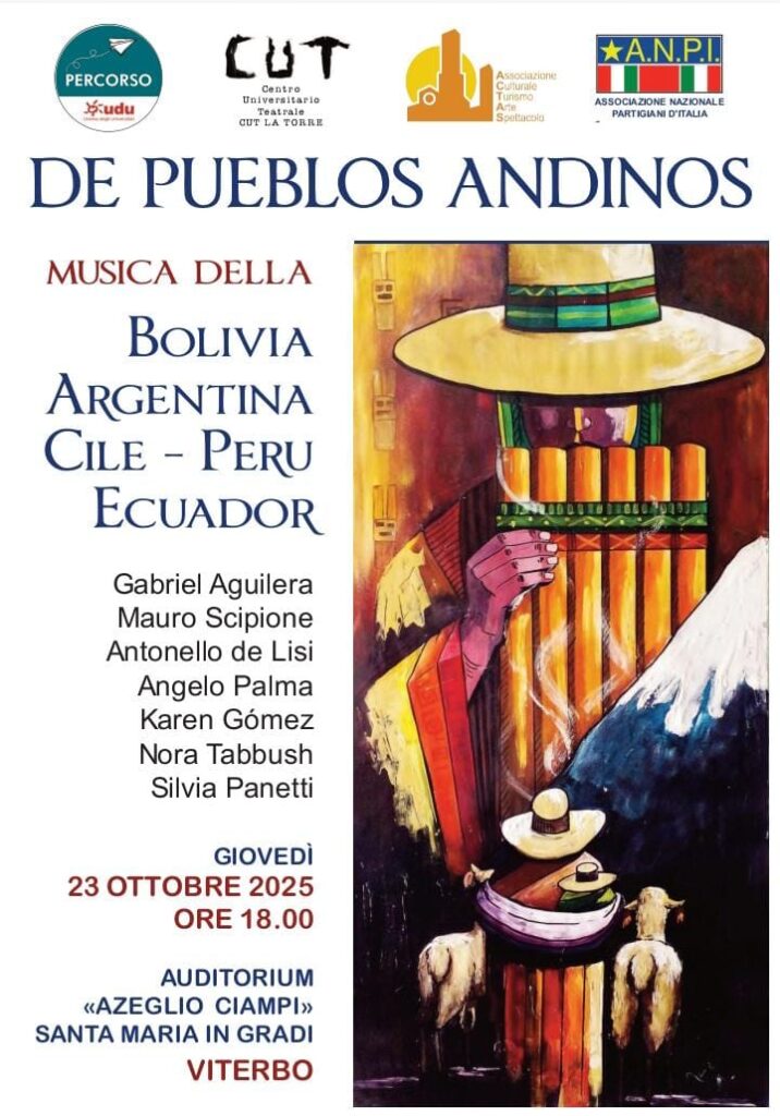 II Comitato provinciale dell’ ANPI di Viterbo, insieme alle sue strutture territoriali e in collaborazione con l’ Associazione Universitaria Percorso e il Centro Universitario teatrale- CUT, invita a partecipare al concerto “Musiche e memorie dai popoli andini”